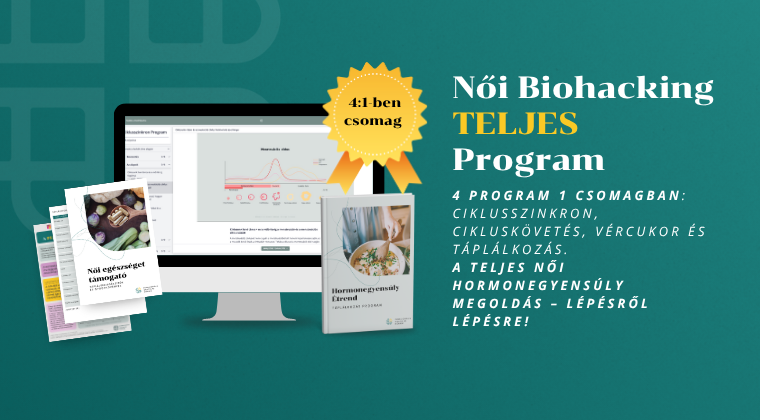 A teljes hormonegyensúly megoldás: Ciklusszinkron + Cikluskövetés + Vércukor egyensúly + Hormonegyensúly táplálkozás. Minden, amire szükséged van a női hormonrendszered optimalizálásához és a hosszú távú egészségedhez!